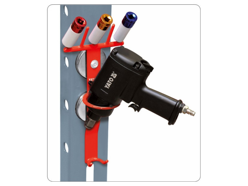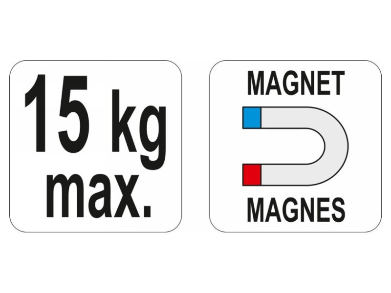 Professzionális mágneses tartó műhelyszerszámokhoz. A két nagyon erős mágnes használatának köszönhetően ez a tartó biztonságosan és biztonságosan felszerelhető bármilyen fémfelületre. Ez különösen olyan oszlopos emelők esetében hasznos megoldás, ahol nem lehet lyukakat fúrni más típusú szerszámtartók felszereléséhez. A tartó teherbírása 15 kg-ig terjed.
