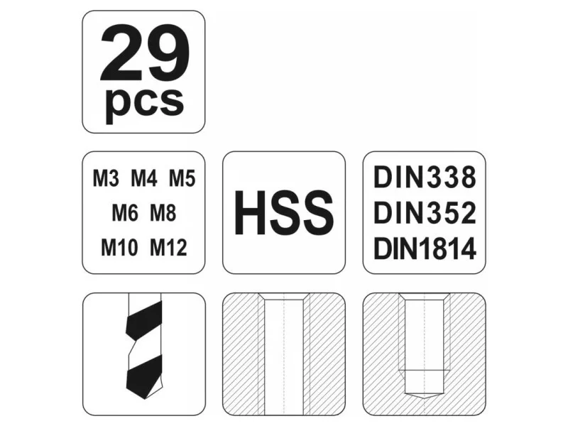 YATO Menetfúró készlet (kézi) 29 részes HSS M13-M12-ig
