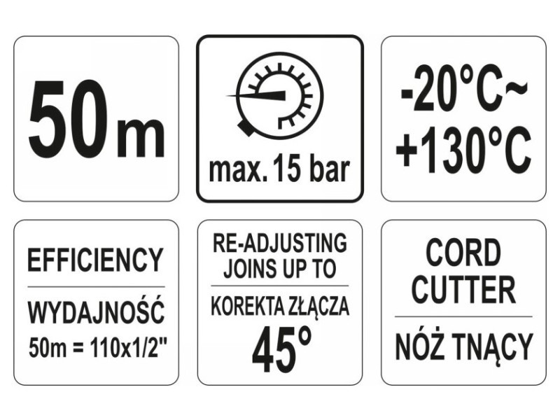 Az 50 m hosszú YATO menet nagyon hatékony, és akár 110 db 1/2" átmérőjű szerelvényt is képes lezárni .