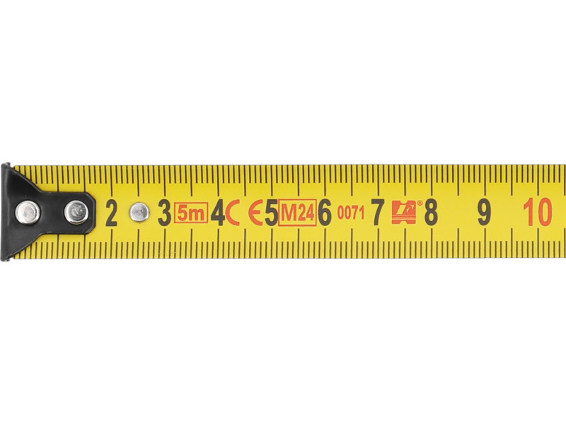 Tekercselt mérőszalag 5 méter hosszú acélszalaggal. II. mérési pontossági osztályban készült. Rövid zsinórral ellátva, amely kényelmesen a csukló köré vezethető vagy felakasztható.