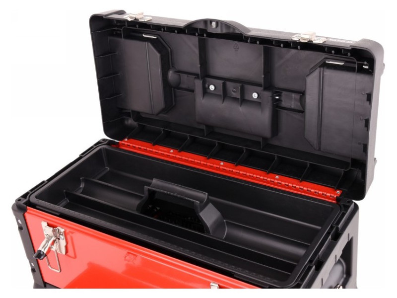 A felső modul egy klasszikus szerszámosláda 420x220x150 mm-es méretekkel és 20 kg teherbírással. Rendelkezik 2 beépített kihúzható szervezővel és egy szerszámtálcával. Ezen kívül a doboz belsejében egy szerszámbetét található, amely: