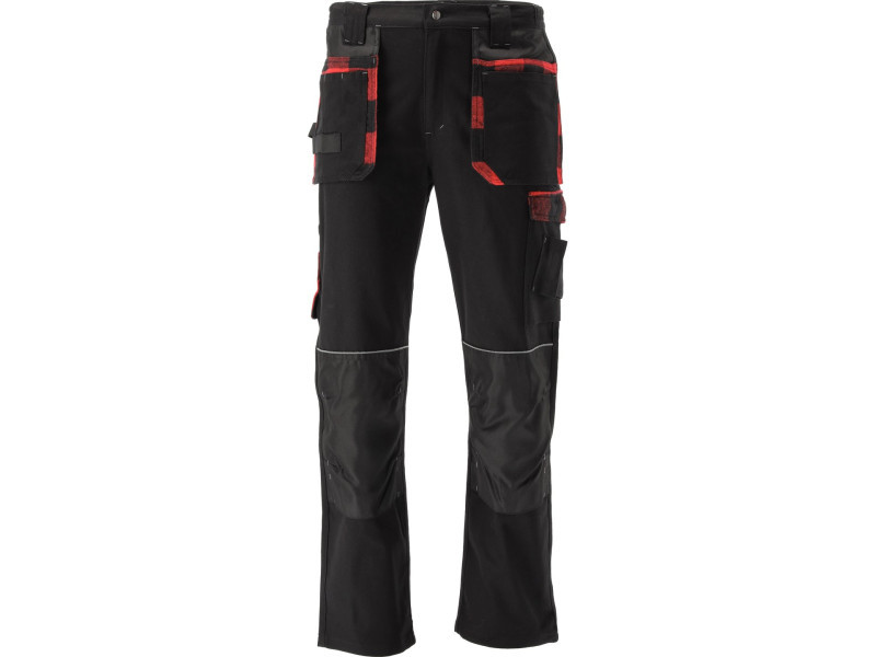 Elasztánból készült munkanadrág, tizennégy zsebbel, ebből kettő tépőzáras, egy pedig patentos. A nagyszámú alapzseb és a robusztus anyagból készült szerelőzseb segít rendszerezni az ács, a tetőfedő vagy a vízvezeték-szerelő munkáját.