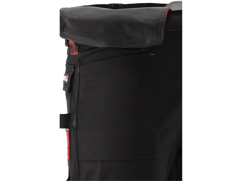 A zsebeken lévő piros és fekete flanel anyag dekoratív funkciót tölt be, míg hátul az öv alatt javítja a kényelmet, az illeszkedést és a hőhatást ezen a testrészen.