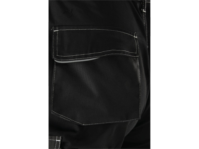 A jó szervezést kilenc zseb segíti, amelyek közül akár hat tépőzárral is zárható. A speciális fényvisszaverő vonalak és a kontrasztos varrás javítja viselője láthatóságát. A derékrész oldalt elasztikus húzózsinórral van ellátva. A térdeknél és a bokák felé kopásálló anyagot használnak.