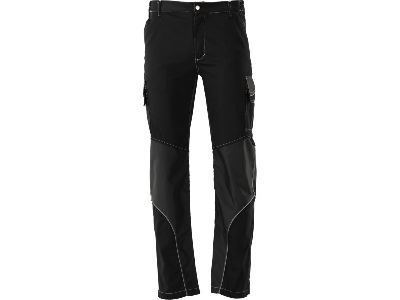 A jó szervezést kilenc zseb segíti, amelyek közül akár hat tépőzárral is zárható. A speciális fényvisszaverő vonalak és a kontrasztos varrás javítja viselője láthatóságát. A derékrész oldalt elasztikus húzózsinórral van ellátva. A térdeknél és a bokák felé kopásálló anyagot használnak.