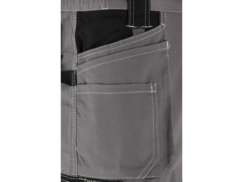 - elöl a derék alatt multifunkcionális zsebek, köztük két fő zseb, három felvarrt zseb, és a bal oldalon textil hurkok, pl. mérőszalag, csavarhúzó, fogó számára