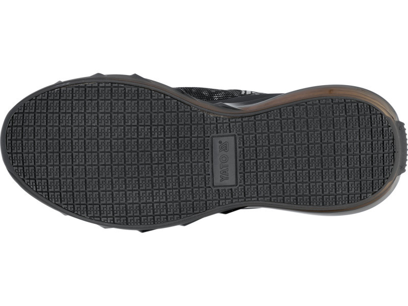 Innovatív három anyagból készült talp. A külső, félig átlátszó TPU rész esztétikai előnyei mellett légpárna funkciót is ellát szinte az egész kerületén. Garantálja a munkavégzés fokozott kényelmét nem szokványos pozíciókban. A belső rész, amely érzékeny ETPU-ból készült, teljes mértékben alátámasztja a lábat, és kiválóan csillapítja a rezgéseket. Az olajálló, csúszásmentes futófelület javítja a stabilitást mind a tisztítószerrel borított, mind az olajos felületeken, amit a SR tanúsítvány is megerősít. A fokozott használati kényelemhez hozzájárul az innovatív popcorn design betét.