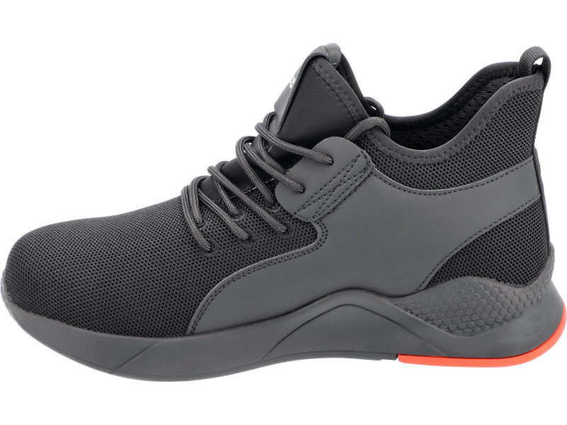 Mind a gumitalp, mind a habbetét, mind a karcolásgátló talp rugalmas, és - a hagyományos PU talppal és acélbetéttel ellátott cipőkkel ellentétben - nem korlátozza a lábközép hajlékonyságát. A lábfej, különösen a lábujjak védelmét az ütésálló acél talpbetét teszi teljessé.