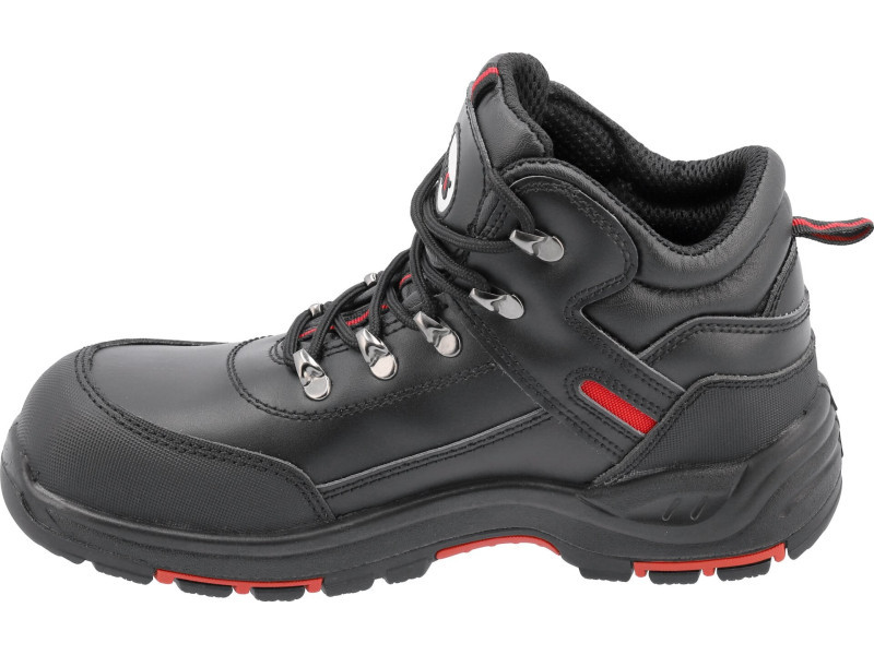A PARAN S3 sorozat könnyű munkabakancs modellje ütésálló kompozit talpbetéttel, rugalmas, szúrásgátló talpbetéttel rendelkezik. A talp két anyagból készült, csúszásgátló gumitalppal, speciális bevágásokkal és tartós PU-ből készült betétekkel, piros színben. A cipő fokozott járási kényelmet nyújt, többek között a lábfejhez igazodó talpbetétnek köszönhetően.