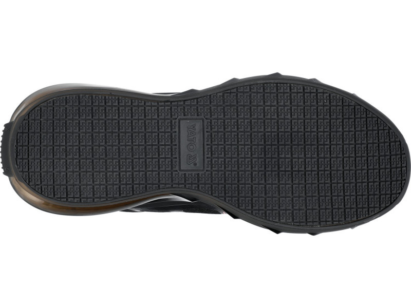 Innovatív három anyagból készült talp. A külső, félig átlátszó TPU rész nemcsak esztétikai előnyökkel bír, hanem szinte az egész kerületén légpárnás funkciót is ellát. Garantálja a munkavégzés fokozott kényelmét nem szabványos helyzetekben. A belső rész, amely reagáló EVA habból készült, teljes mértékben megtámasztja a lábat, és kiválóan elnyeli a rezgéseket. A gumiból készült csúszásgátló futófelület javítja a stabilitást, akár tisztítószerrel borított, akár olajos felületen, amit az SR tanúsítvány is megerősít. A fokozott használati kényelemhez hozzájárul az innovatív popcorn design betét.