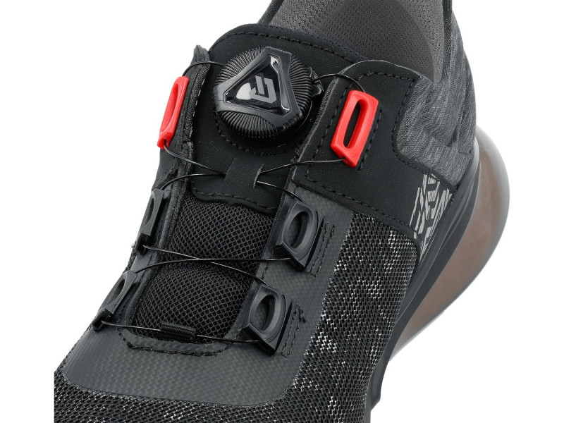 A felsőrész poliészter szövetből készült, TPU réteggel a lábujjak felett, valamint innovatív, poliuretán és hőre lágyuló poliuretánból készült, poliészter szövettel borított integrált sarkal. Ez a megoldás a legmagasabb kategóriás sportcipőkben található. A sarkat és a felsőrész elejét mikroszálas szintetikus bőrből készült csík választja el. A félautomata, tekerős fűzők sportos jelleget kölcsönöznek a cipőnek.
