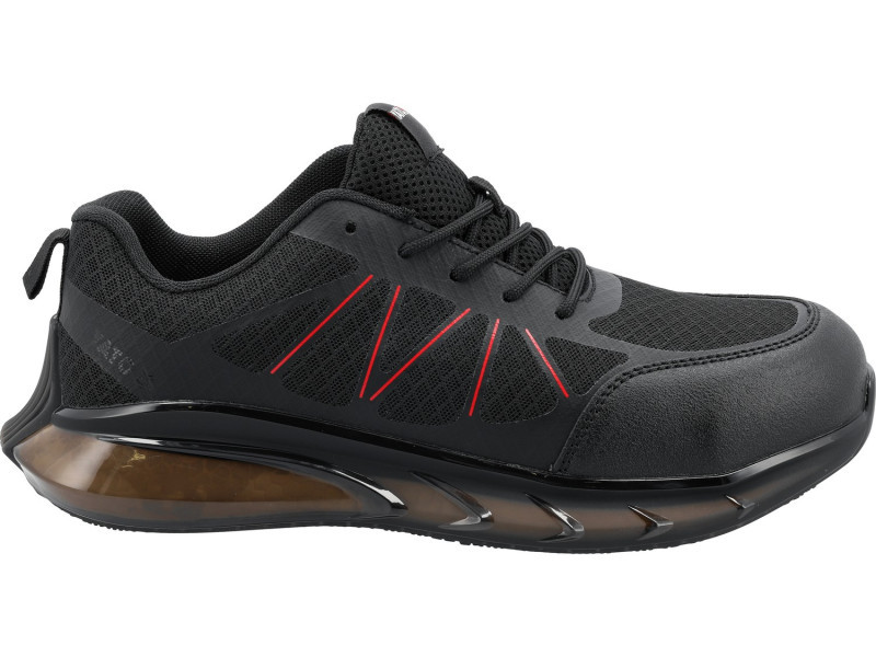 Innovatív három anyagból készült talp. A külső, félig átlátszó TPU rész nemcsak esztétikai előnyökkel bír, hanem szinte az egész kerületén légpárnás funkciót is ellát. Garantálja a munkavégzés fokozott kényelmét nem szabványos helyzetekben. A belső rész, amely reagáló EVA habból készült, teljes mértékben megtámasztja a lábat, és kiválóan elnyeli a rezgéseket. A gumiból készült csúszásgátló futófelület javítja a stabilitást, akár tisztítószerrel borított, akár olajos felületen, amit az SR tanúsítvány is megerősít. A fokozott használati kényelemhez hozzájárul az innovatív popcorn design betét.