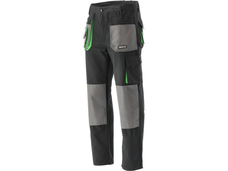 Munkanadrág kilenc zsebbel, amelyek közül hat tépőzárral záródik, és speciális zsebekkel a térdvédők számára.