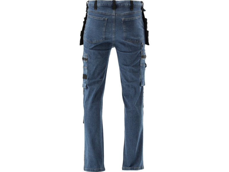 Rugalmas anyagból készült munkás nadrág, kopott és rugalmas farmerből. Összesen tizenhét zseb, köztük egy tépőzáras, két cipzáros és két levehető munkás zseb. A nagy számú alap zseb és a strapabíró anyagból készült munkás zsebek segítenek a asztalos, tetőfedő vagy vízvezeték-szerelő munkájának megszervezésében.