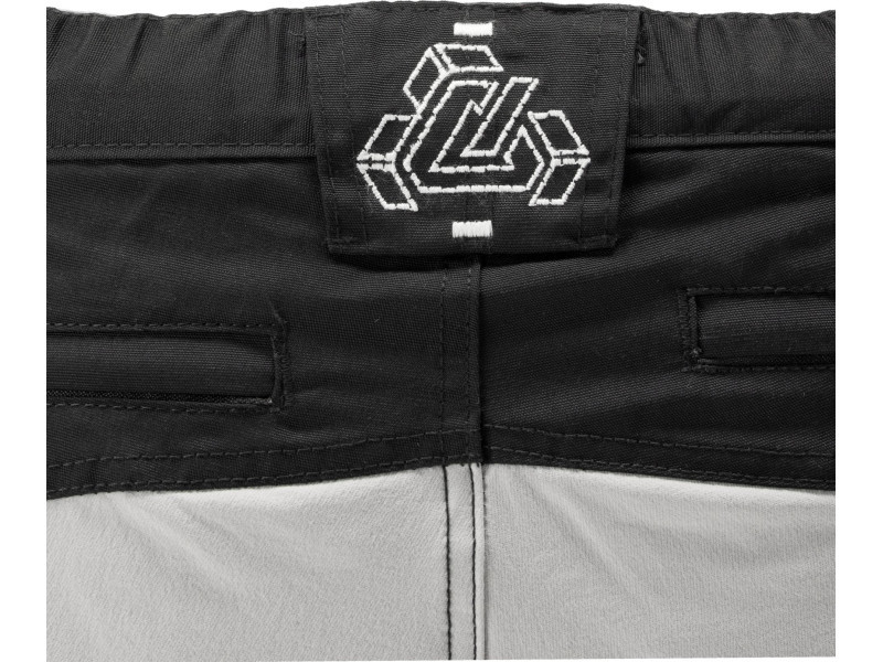 A fő anyag pamut-poliészter keverék megfelelő arányban. Ez a megoldás lehetővé teszi mindkét anyag előnyeinek kihasználását, például növelt kopásállóságot és jó légáteresztést. A kontrasztos színű betétek nylonból és elasztánból készülnek. Strapabíró és rugalmas, jelentősen javítja a munkakényelmet, különösen nem szokványos pozíciókban.