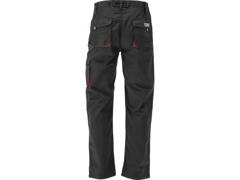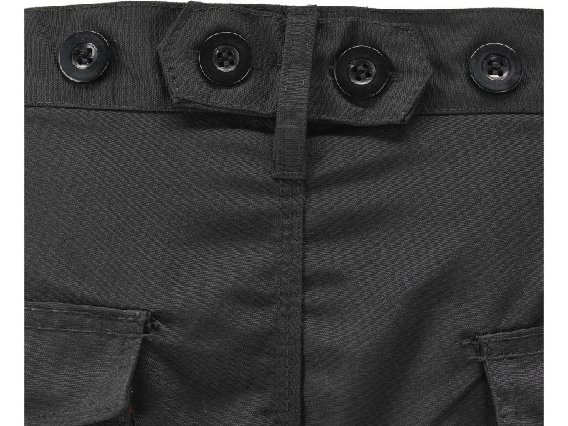 Munkanadrág kilenc zsebbel, köztük hat tépőzáras zseb és speciális zsebek térdvédőkhöz.