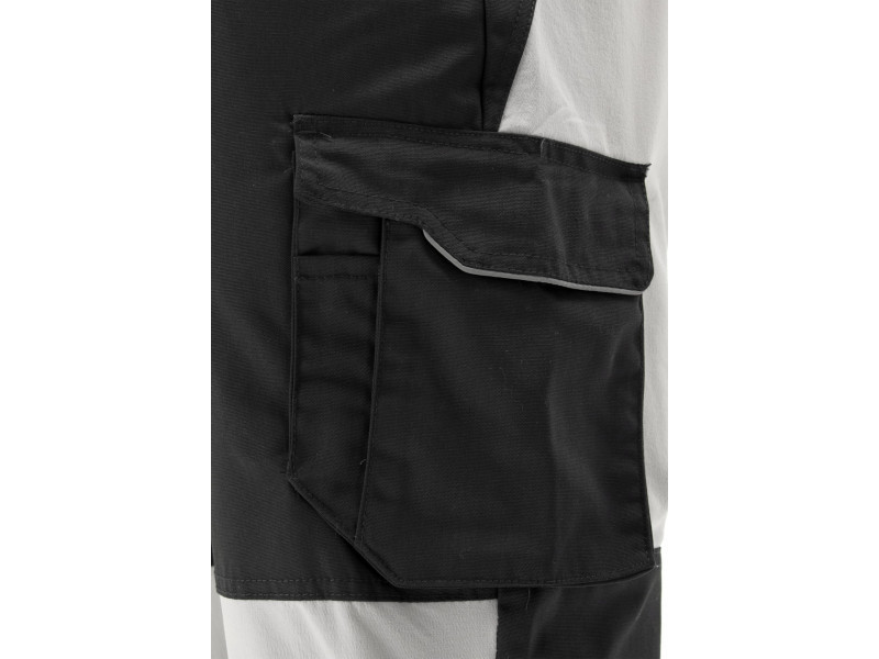 Munkanadrág a SERWAL termékcsaládból, 4 irányban sztreccs anyagból készült betétekkel. Tizenegy zseb, köztük egy rejtett cipzárral ellátott multifunkciós zseb, amely ideális pénztárca vagy telefon számára. A nadrág kb. 4 cm-rel lerövidíthető a bevarrt nyomógombok segítségével. Számos varrás a legérzékenyebb helyeken.