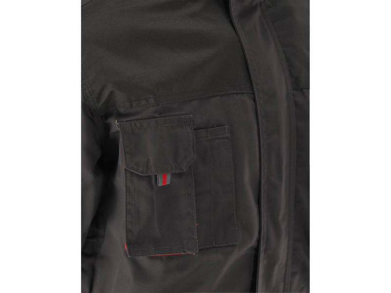 Munkahelyi melegítőfelső nyolc zsebbel, hónaljszellőzéssel és számos kiegészítő szegéllyel, kopásálló anyagból a legérzékenyebb területeken.