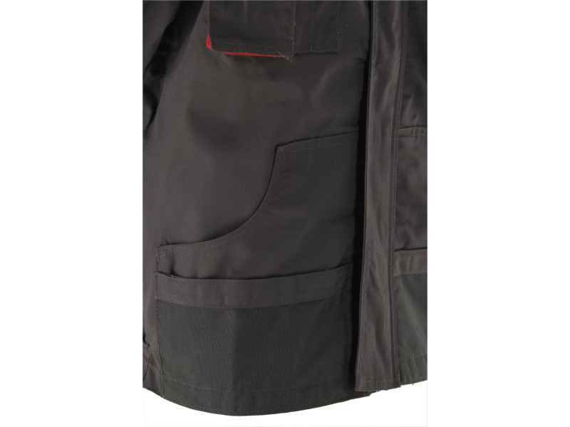 Munkahelyi melegítőfelső nyolc zsebbel, hónaljszellőzéssel és számos kiegészítő szegéllyel, kopásálló anyagból a legérzékenyebb területeken.