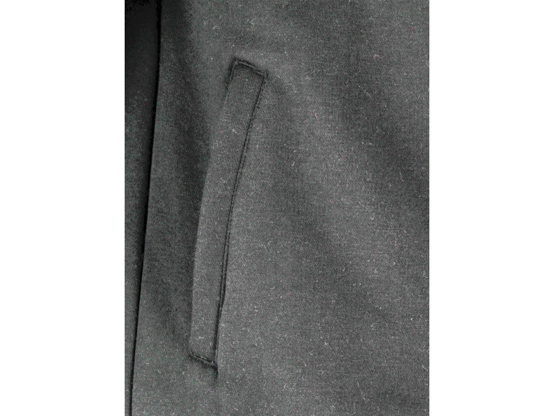 Kapucnis pulóver két cipzáras zsebbel a derekánál. A anyag vastag és meleg pamut, poliészterrel keverve. A pamut mint természetes anyag, nagyon kellemes tapintású, ezen a sűrűségen optimális hőkomfortot biztosít tavasszal és ősszel egyaránt. A poliészter hozzáadása megerősíti a szálat, javítva ezzel az anyag ellenállását a szakadással szemben. A két vállon lévő párnázott anyag enyhíti a nyomást például egy cementes zsák hordása esetén. A speciális, fényvisszaverő tintával készült nyomtatások javítják a felhasználó láthatóságát.