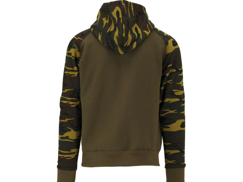 Kapucnis pulóver, két nyitott zsebbel a deréktájékon. A anyag elég vastag és meleg pamut poliészter keverék. A pamut mint természetes anyag, nagyon kellemes tapintású, ezen a súlyon optimális hőkomfortot biztosít tavasszal és ősszel egyaránt. A poliészter hozzáadása megerősíti a szálat, ezzel javítva az anyag ellenálló képességét a szakadás ellen.