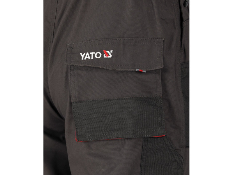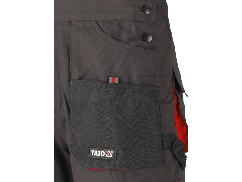 Hám típusú munkanadrág tizenegy zsebbel, amelyek közül hét tépőzárral záródik, és speciális zsebekkel a térdvédők számára.