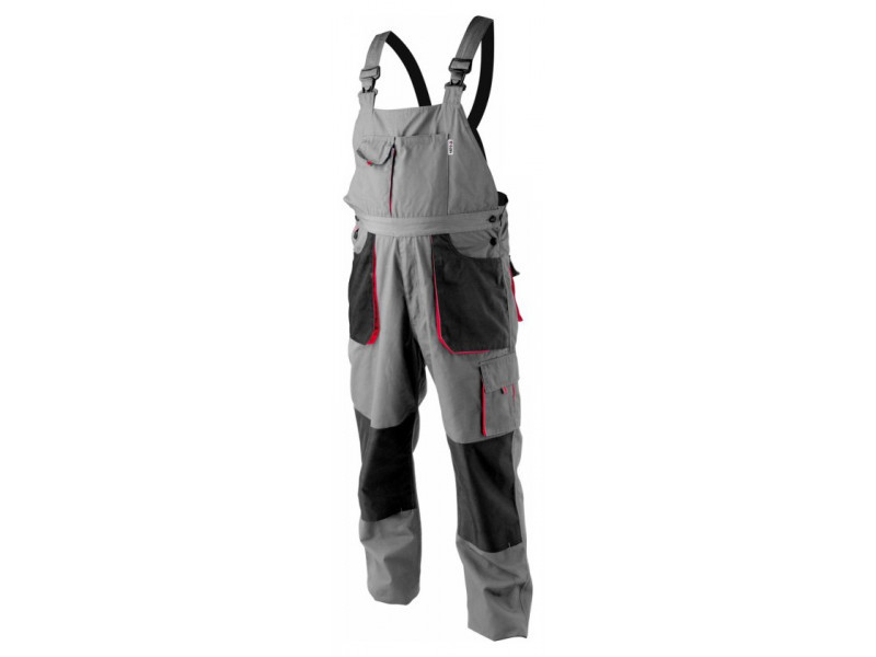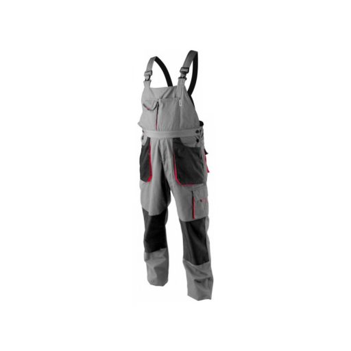 Hám típusú munkanadrág hét zsebbel, amelyek közül öt tépőzárral záródik, és speciális zsebekkel a térdvédők számára.
