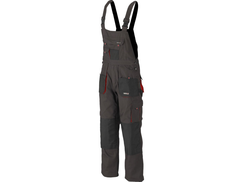Hám típusú munkanadrág tizenegy zsebbel, amelyek közül hét tépőzárral záródik, és speciális zsebekkel a térdvédők számára.