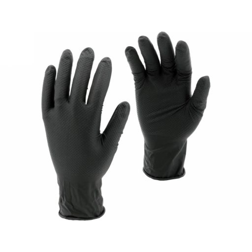 Nitril gyémánt textúrájú kesztyűk magas mechanikai és kémiai ellenállást igénylő munkákhoz. Magas minőségű nitrilből készülnek, hatékony védelmet nyújtanak a kéznek, miközben megőrzik a jó érzékenységet és mozgásprecizitást. Rugalmas anyag jól illeszkedik a kézre, ezáltal kényelmet biztosít hosszabb használat során.
