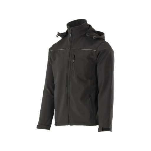 Softshell kabát három vízálló cipzáras zsebbel és levehető kapucnival.