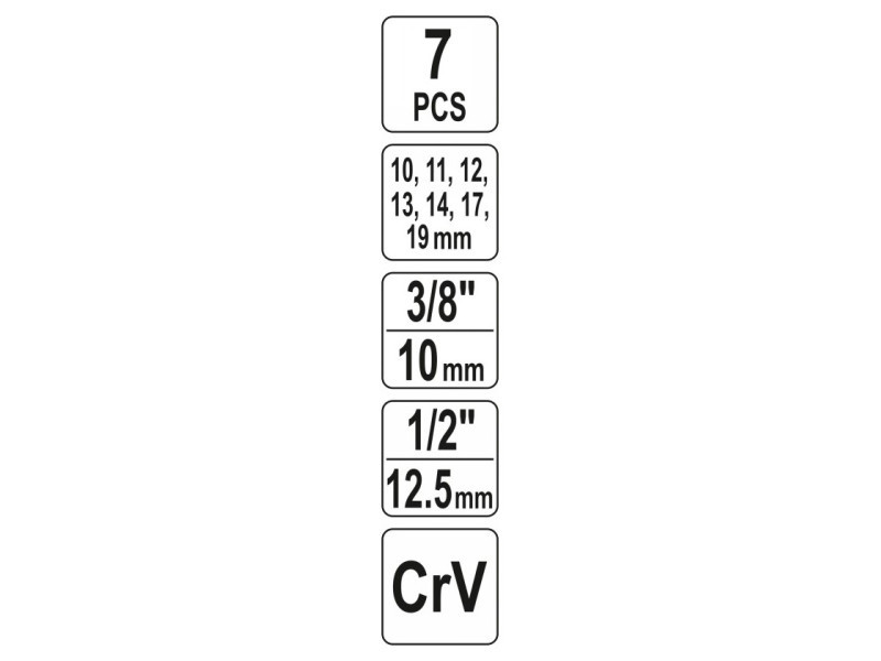 • Dugókulcs méretek tartománya: 10, 11, 12, 13, 14, 17, 19 mm