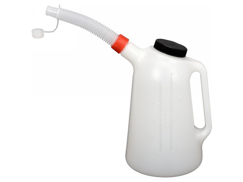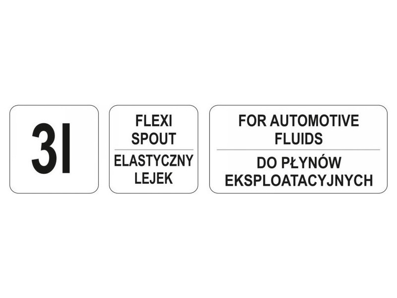 • tartós, folyadékálló PE műanyagból készült, praktikus, rugalmas tölcsérrel és csavaros fedéllel.