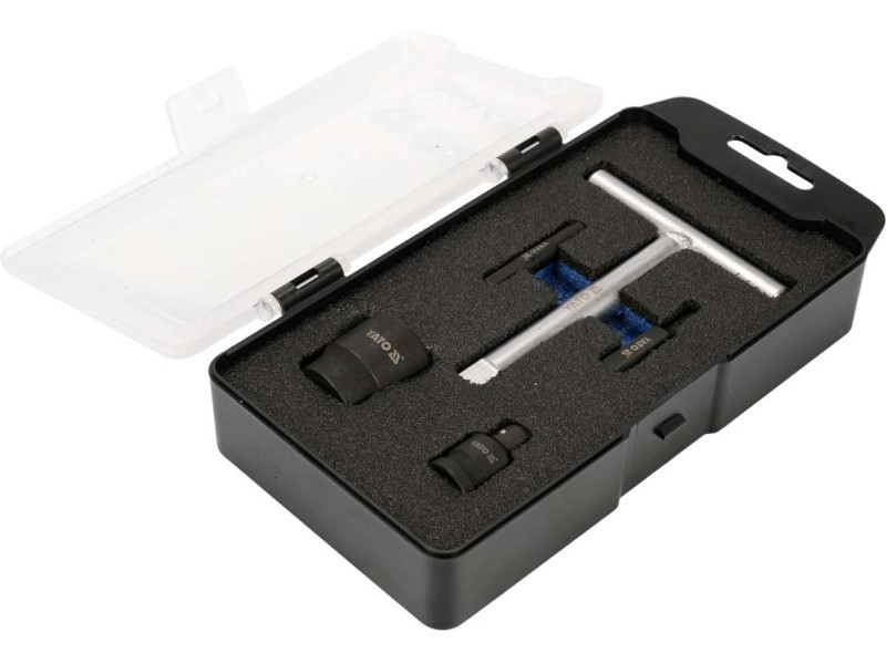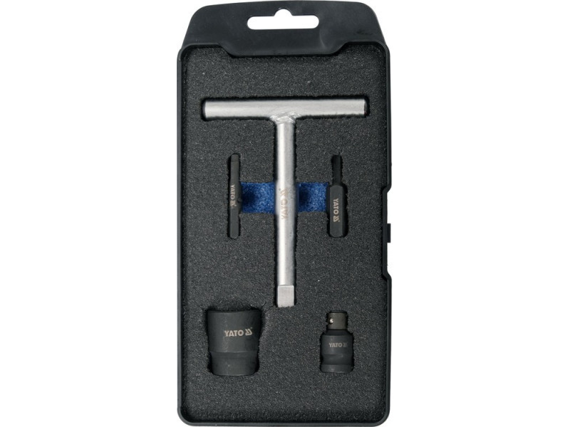 A készlet 4 típusú olajdugó kezelését teszi lehetővé. Elengedhetetlen a dugók biztonságos ki- és becsavarásához. T-típusú gombbal rendelkezik, amelynek kialakítása biztosítja a megfelelő csavarási nyomatékot, hogy a dugók ne akadjanak be az olajteknő meneteibe.
