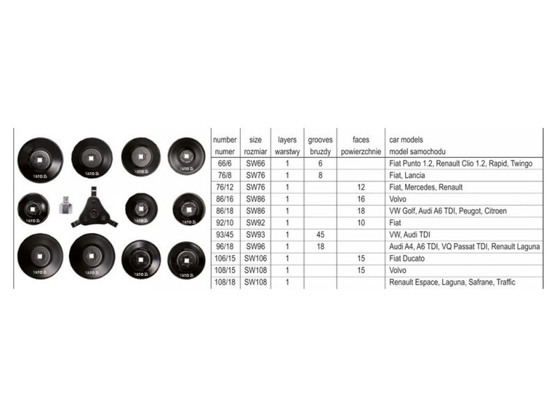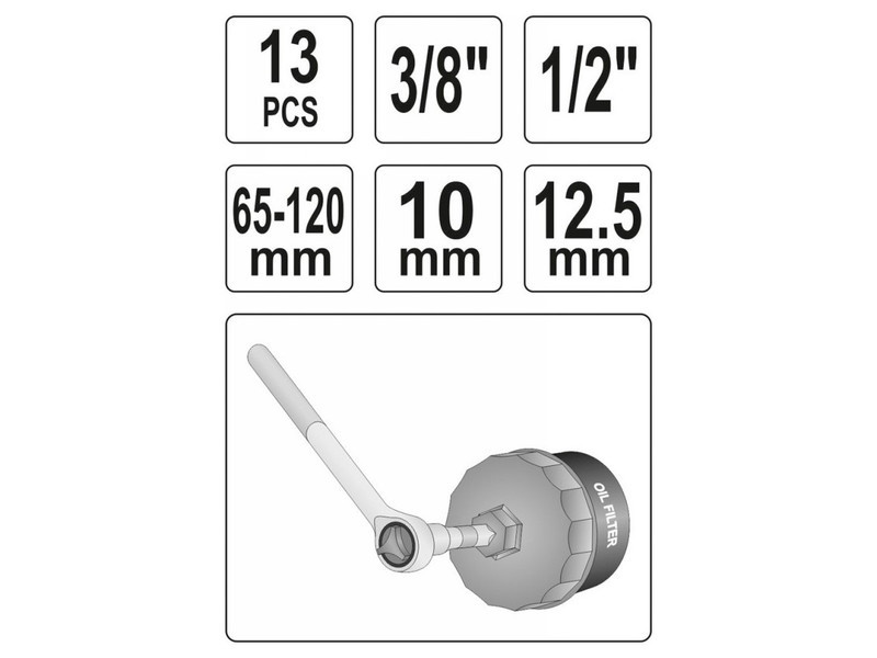 YATO Olajszűrő leszedő készlet 13 részes 3/8"