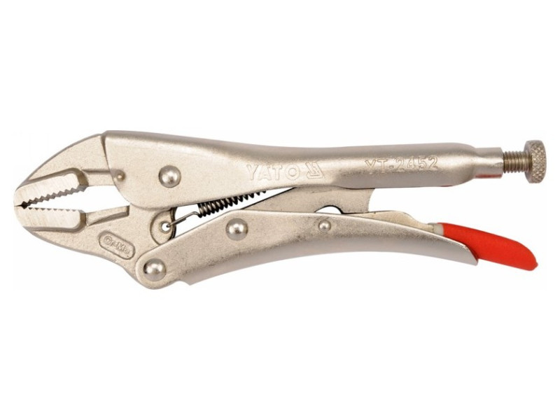 Morse krimpelő fogó 180mm hosszú, egyenes pofákkal. Hegesztési, lakatos és szerelési munkákhoz tervezték. Csavaros állítással rendelkezik a megragadandó anyag vastagságának megfelelő pofaszélesség beállításához.