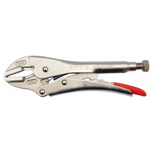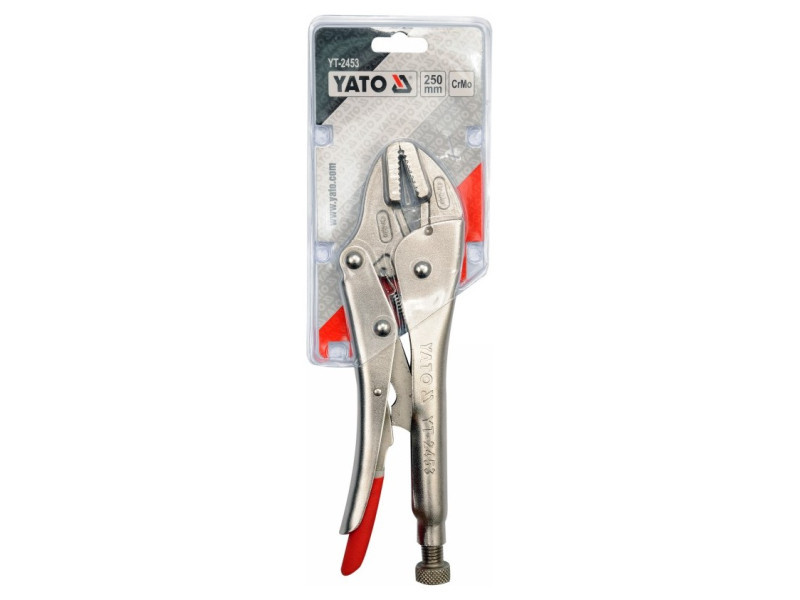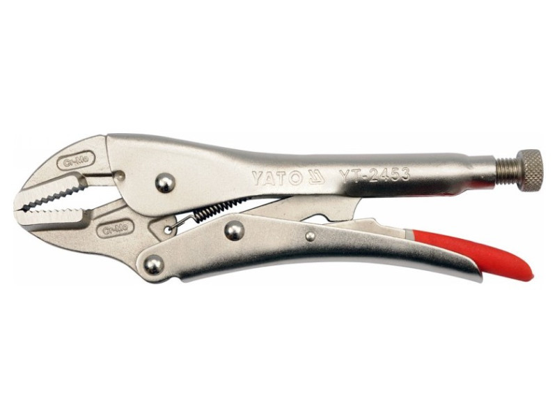 Morze krimpelő fogó 250 mm hosszú, egyenes pofákkal. Hegesztési, lakatos- és szerelési munkákhoz tervezték. Csavaros állítással rendelkezik a megragadandó anyag vastagságának megfelelő pofaszélesség beállításához.