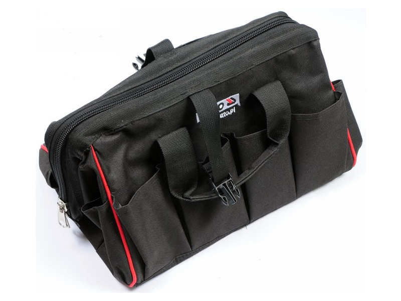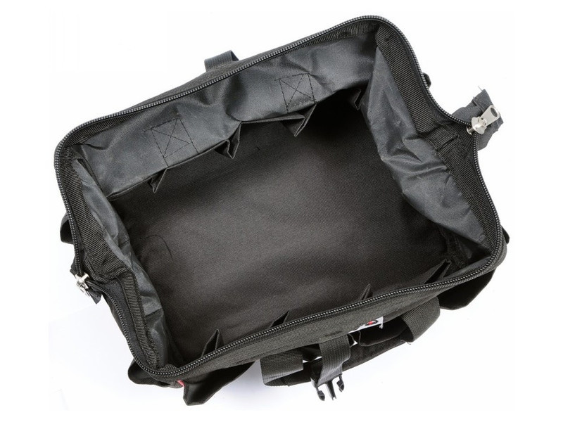 Robusztus táska megerősített szerkezettel. Több szerszám szállítására tervezték. Nagy cipzáras zsebekkel a kisebb szerszámok kényelmes tárolásához.