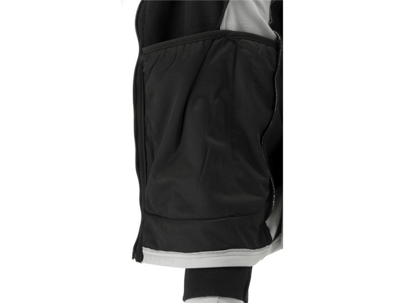 - A rugalmas 2-way stretch anyag oldalt, a hónalj alatt és részben az ujjak alján szinte teljesen megszünteti a hagyományos polárok munkavégzés közbeni kellemetlenségét, pl. törzsforgás vagy fej fölé emelt munka közben. Jobb levegőcirkulációt biztosít, így kevésbé izzadunk, különösen a hónalj területén.
