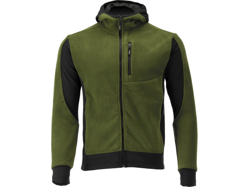 Kapucnis polárpulóver funkcionális zónákkal és öt zsebbel. Ötvözi a munkaruházat jellemzőit az outdoor ruházat kényelmével és mozgásszabadságával.