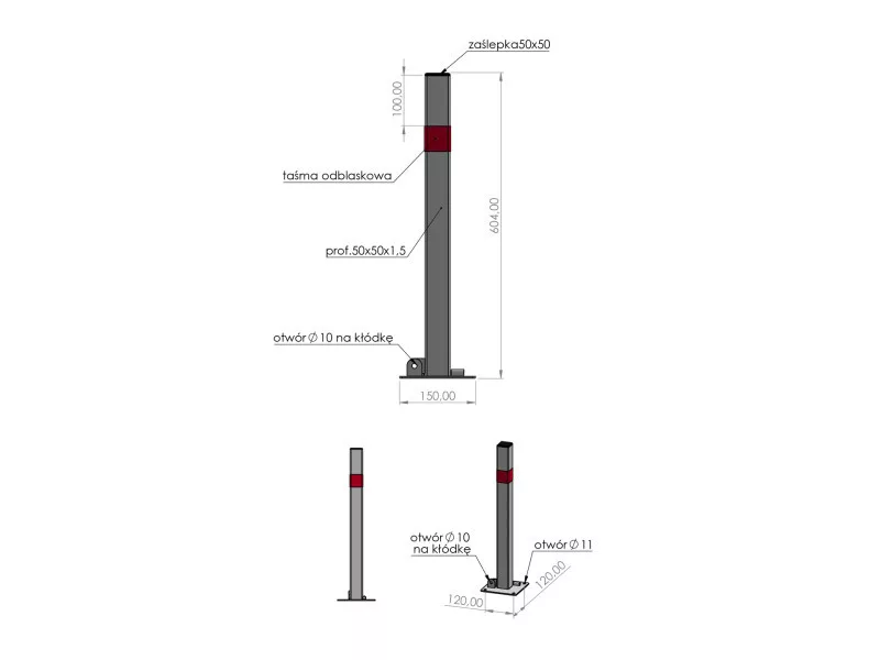 Összecsukható parkolózár "oszlop" a területek hatékony biztosításához az illetéktelen behajtás vagy a járművek parkolása ellen. Kényelmet és biztonságot nyújt a kijelölt területekhez való hozzáférés kezelésében. Lehetővé teszi a parkolóhelyek vagy a behajtás ideiglenes lezárását, pl. magánterületeken, gyalogutakon, zöldterületeken, árvízvédelmi töltéseken, sétányokon.