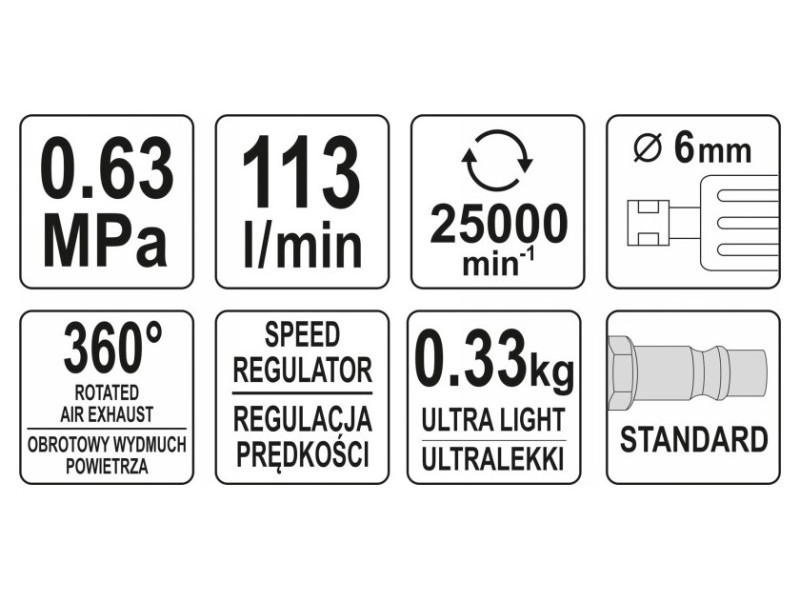| Állítsa be a tartalmat | pneumatikus köszörű, tömlőcsatlakozó, szerszámtartó kulcs x2 |