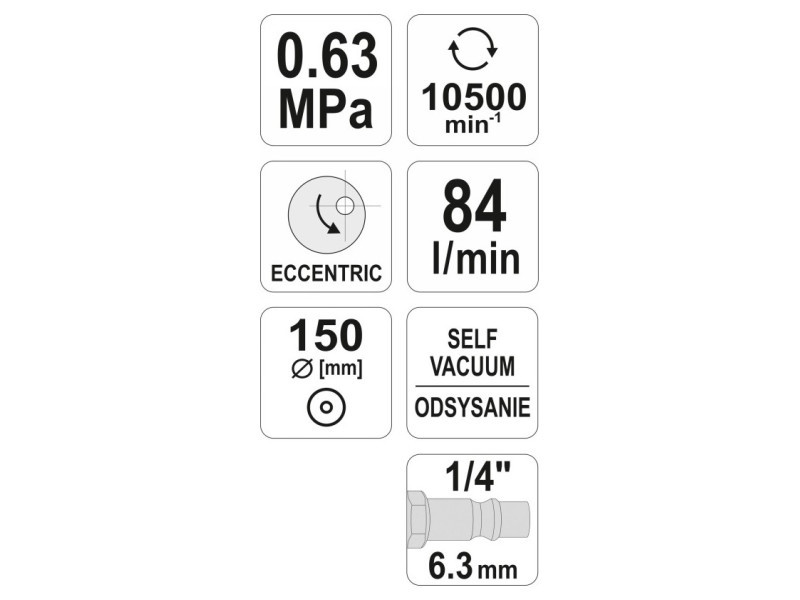 levegős excentrikus csiszoló egy megfelelő nyomású sűrített levegővel működő szerszám. A készlet tartalmaz