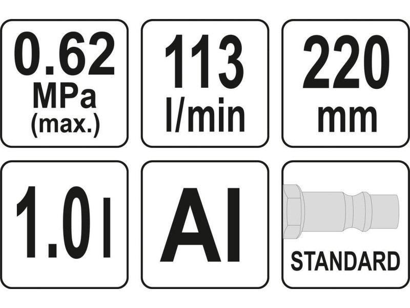 | Max. légnyomás | 0.62 MPa |