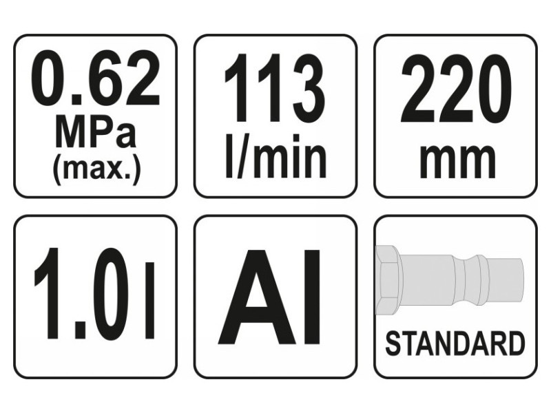 - levegőfogyasztás: 113 l/min