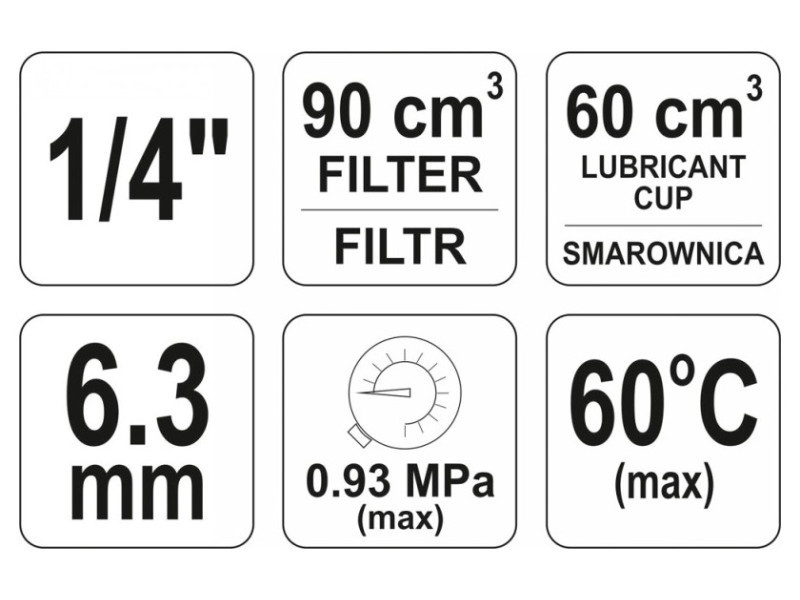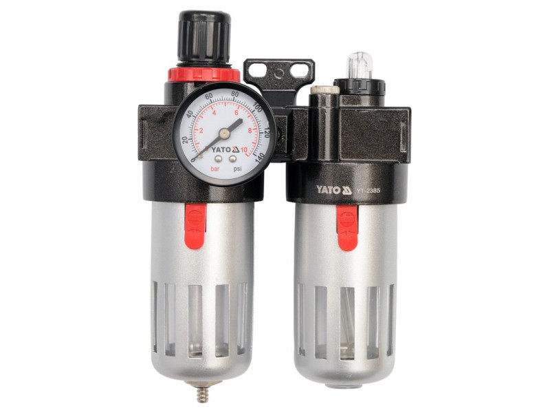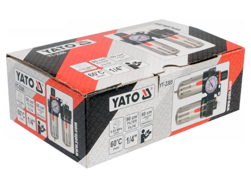 YATO Pneumatikus levegő szűrő nyomásszabályzóval kenőtartállyal 1/4" 90 cm3
