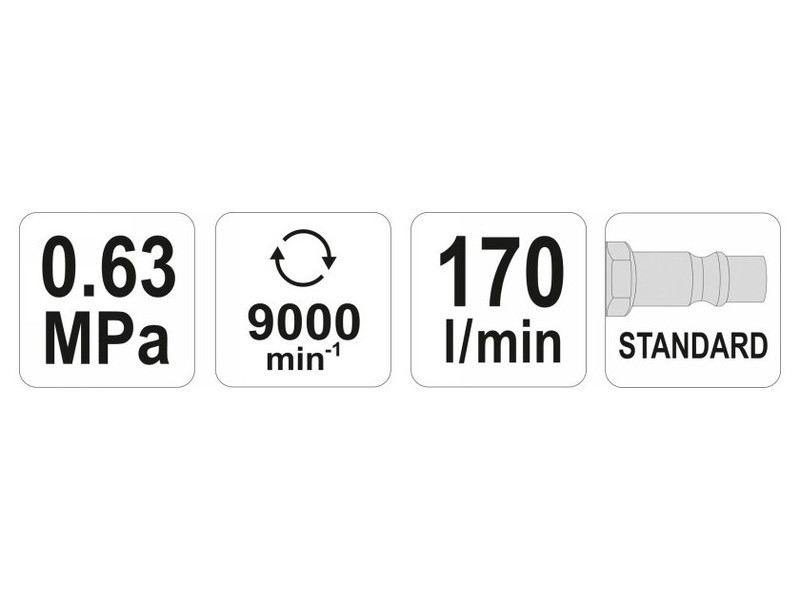 | A levegőellátó tömlő belső átmérője | 3/8" (9,5 mm) |