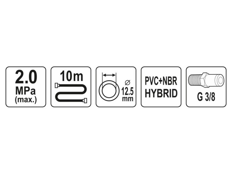 A tömlő rendkívül rugalmas, ellenáll a magas és alacsony hőmérsékletnek, a nyúlásnak, a kopásnak és az agresszív vegyi anyagoknak. Kovácsolva, szabványos menetes csatlakozókkal, gumikarimával megerősítve.