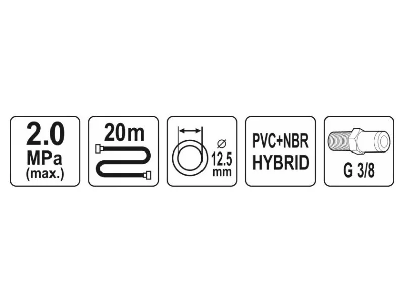 Hibrid sűrített levegős tömlő, amely nélkülözhetetlen a pneumatikus szerszámok működtetéséhez. Hasznos minden műhelyben és gyártóüzemben.