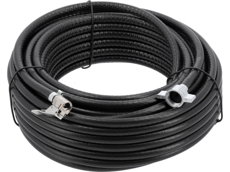 Professzionális, rugalmas sűrített levegős tömlő. Alkalmas légkompresszorral ellátott járművekhez. Furgonok, teherautók, félpótkocsik, mezőgazdasági vontatók stb. szivattyúzásához. Minden kerék szivattyúzásához még nagyon hosszú járműveknél is. Tömlővégek mindkét oldalon csatlakozóval. Egyik oldalon M16x1,5 mm-es, járműkompresszorokhoz alkalmas, belső menetes pillangócsatlakozóval végződik. A másik oldalon egy szabványos autószelephez igazított kompressziós csatlakozóval. A tömlő három rétegből épül fel. A belső puha PVC-ből és sűrű poliészter textilerősítésű fonattal készült. A külső réteg időjárásálló PVC-ből készül.
