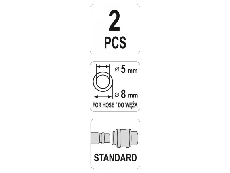 Univerzális acél külső gyorscsatlakozók 5 x 8 mm-es tömlőhöz, nyomóanyával.